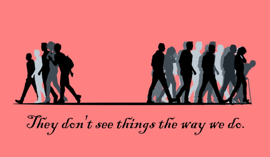 This illusion shows how our brains construct what we perceive even if it’s not real. Our brains also construct our views of the world. These constructions feel objective rather than subjective. When we encounter another person’s views, it threatens our sense of reality. So, we become suspicious of or angry at the person.