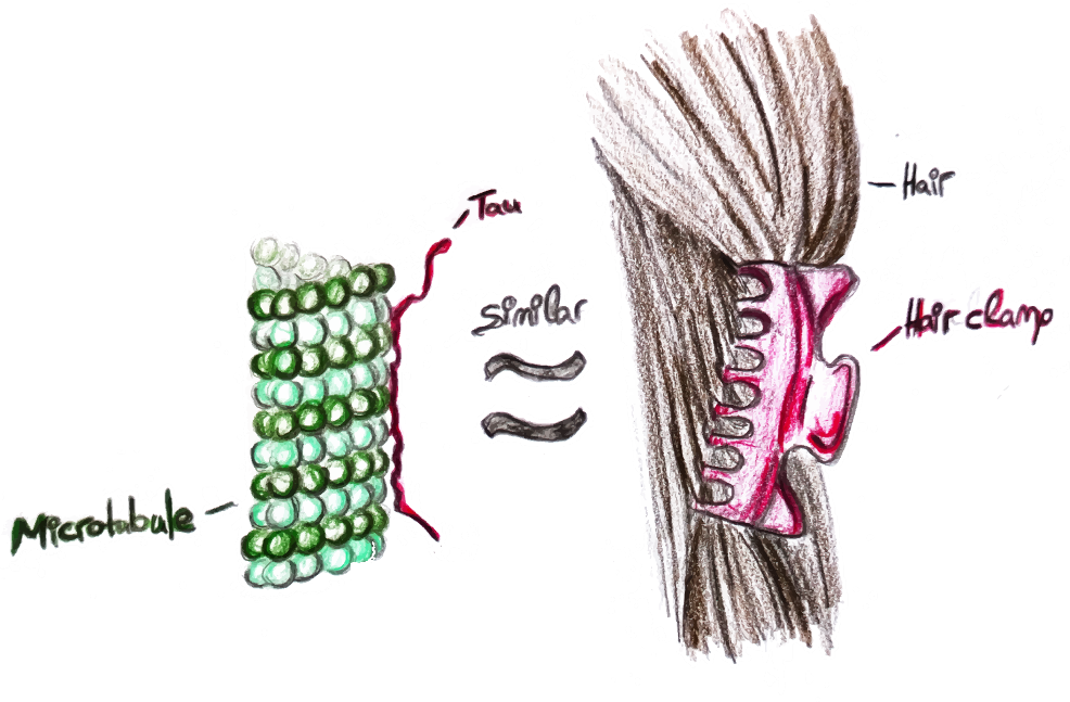 Researchers noticed in 1986 that Alzheimer’s disease disrupts microtubules’ dynamic behavior, but could tau play a role? The answer seems to be “yes”. Although the exact reason is still unknown and researchers argue over the cause-and-effect order of the disease, a wrong biochemical modification of tau is observed in Alzheimer’s disease. The differently-modified tau protein cannot bind to the microtubules, causing microtubules’ instability and hence less structure and less transport in the nerve cell. This process is comparable to the human skeleton in which calcium serves as a small, but essential component to build a bone.