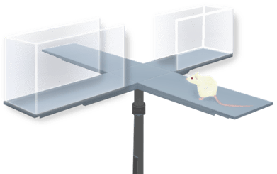 Elevated Plus Maze graphic from: DataBase Center for Life Science (DBCLS), under Creative Commons Attribution 4.0 International License 2021.