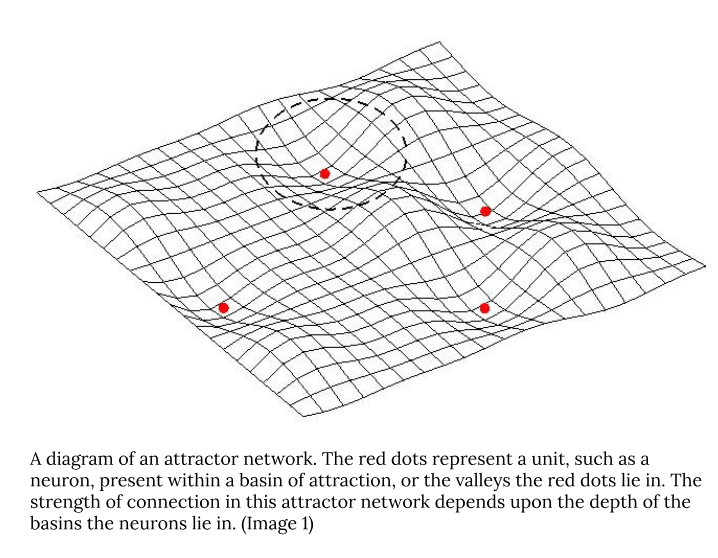 Differences in connections between brain regions are recorded through attractor networks. In simple terms, an attractor network is a network of nodes, or distinct neural elements such as neurons, that are often recurrently connected within a system. Differences in these “recurrent connections” depend on the amount of excitatory connections within these attractor networks. Excitatory connections are “those that prompt one neuron to share information with the next” (4). If excitatory connections are high, this promotes large “basins of attraction” where overall energy is low. To understand, think of these networks of nodes, or neurons, as magnets. The stronger the two magnets, the stronger their magnetic field, and the more likely they are to draw to each other and continuously stick together. In contrast, the weaker the magnet, the weaker the magnetic field, and the less likely these magnets will draw to each other and continuously stick together. Essentially, these “magnetic fields” are like basins of attraction between neurons. The strength of the “magnetic field”, or depth of the basin of attraction, is dependent upon the amount of excitatory connections neurons have within an attractor network.