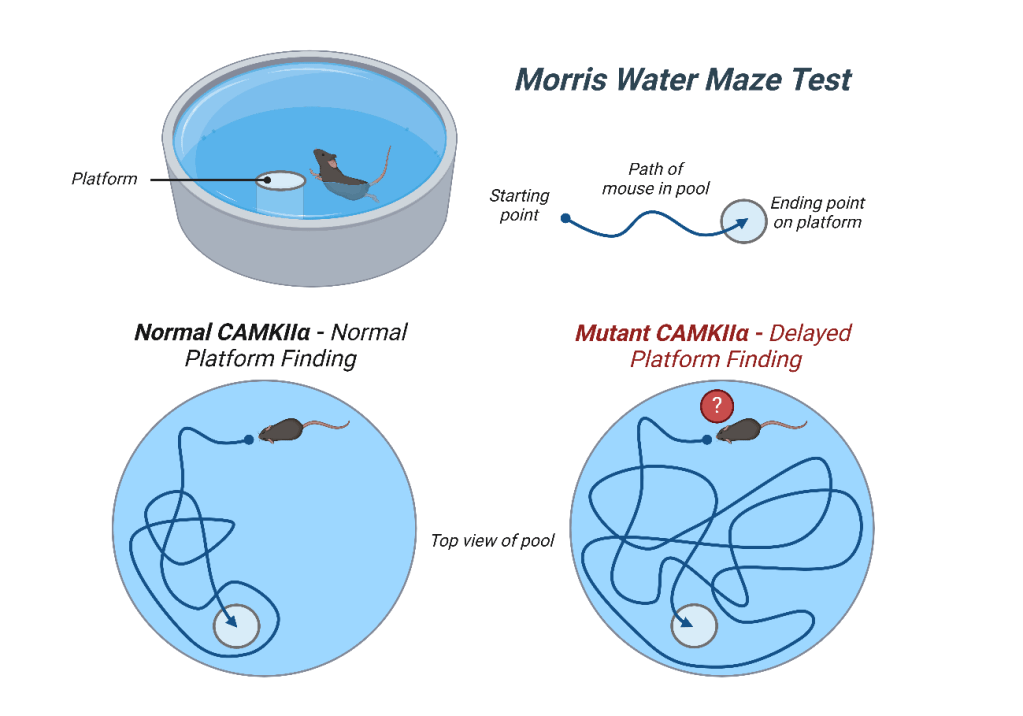 So what happens when protein synthesis is stuck in the soma? How does that affect a mouse’s ability to remember? These researchers decided to use a rodent behavioral test known as the Morris Water Maze which tests a mouse’s ability to encode and recall spatial memories. A mouse is placed in pool of cloudy water and must swim and find a hidden escape platform by following several visual cues located around the pool. With the healthy, control mice that had an “unmutated” form of CAMKIIα, they were easily able to find the escape platform in a timely fashion. But mice with the mutated form of CAMKIIα consistently struggled to find the platform, even after multiple attempts (1). The findings from this study not only supported the importance of local protein synthesis in aiding brain function, but also it’s vital role in allowing our brains to properly encode and recall memories!